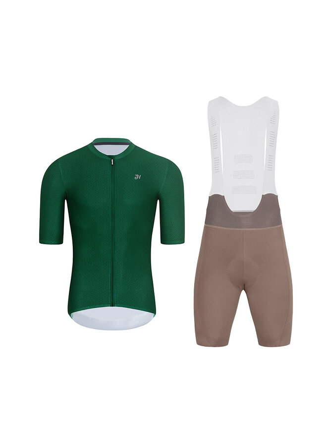 Cyklistický krátký dres a krátké kalhoty - AEROLITE - zelená/hnědá