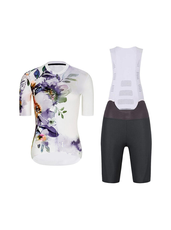 Cyklistický krátký dres a krátké kalhoty - FLOWERY LADY - antracitová/bílá/vícebarevná