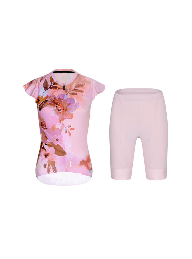 Cyklistický krátký dres a krátké kalhoty - MISS FLOWERY - růžová