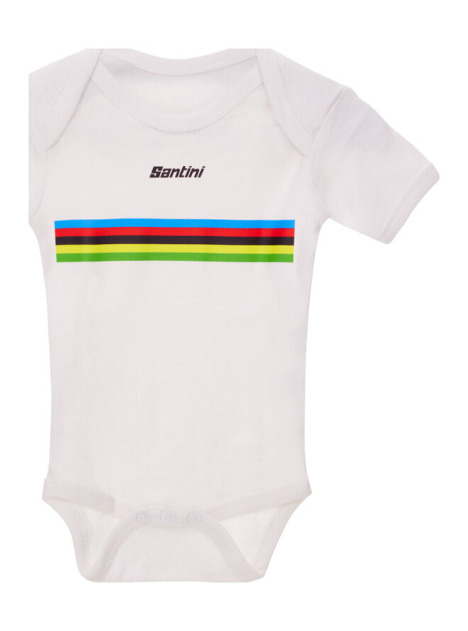 Udržujte své dítě v pohodlí s naším dětským body UCI World Champion, které nabízí pohodlí i ochranu. Je vyrobeno ze 100% kroužkované bavlny, takže je šetrné k citlivé pokožce vašeho dítěte a prodyšné pro každodenní nošení. Díky krátkým rukávům a žebrovaným lemům 1x1 zajišťuje dokonalé přizpůsobení, zatímco konstrukce s bočními švy poskytuje odolnost. Díky praktickému zapínání na patentky pro rychlé přebalování je ideální pro malé šampiony na cestách.Detaily