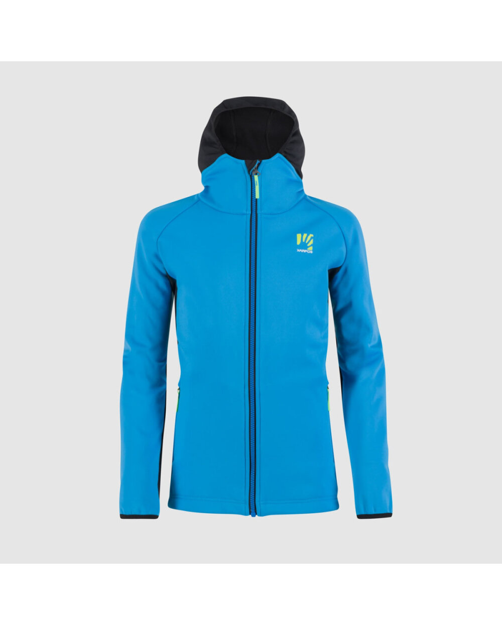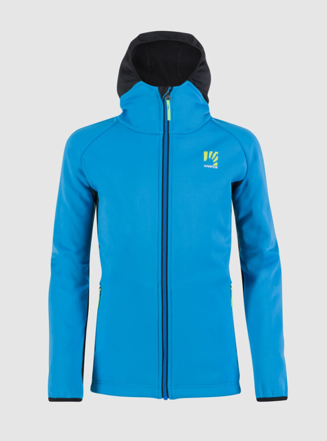Dětská bunda s kapucí Karpos Lavaredo je určena pro běhání a další aerobní aktivity v zimě. Díky hybridní konstrukci poskytuje přední strana ochranu před větrem, udržování tepla, zatímco prodyšné strany a zadní strana účinně odvádějí pot a zabraňují přehřívání.