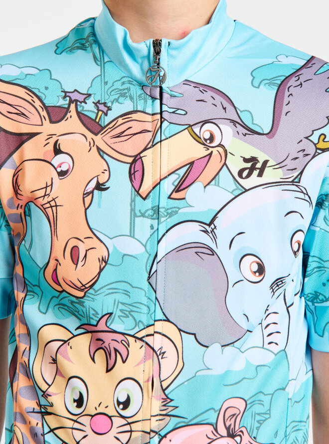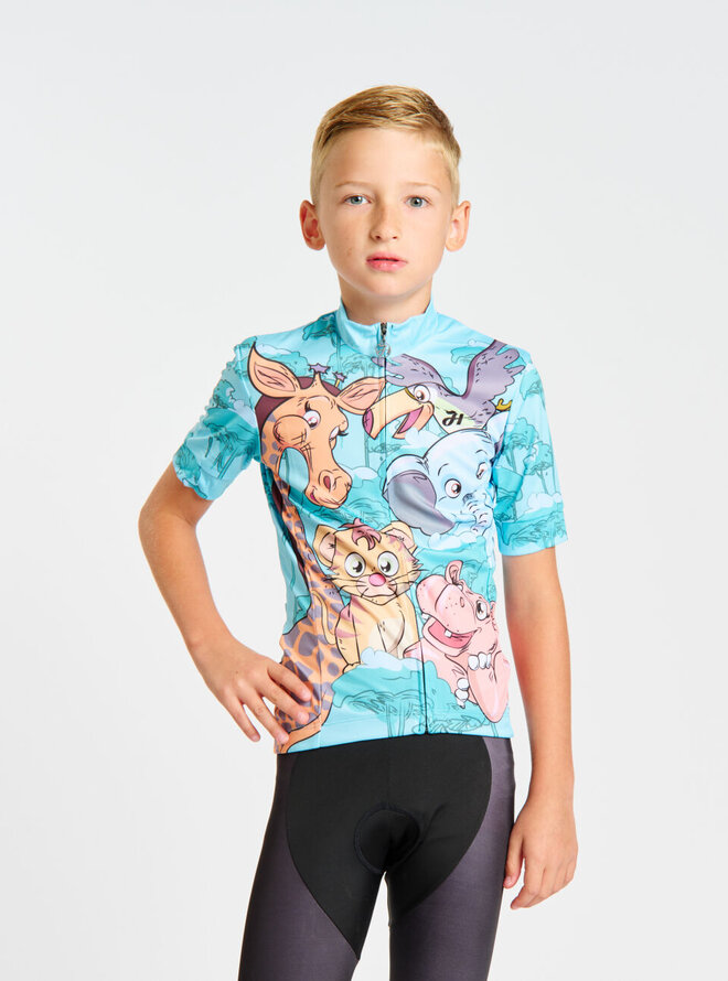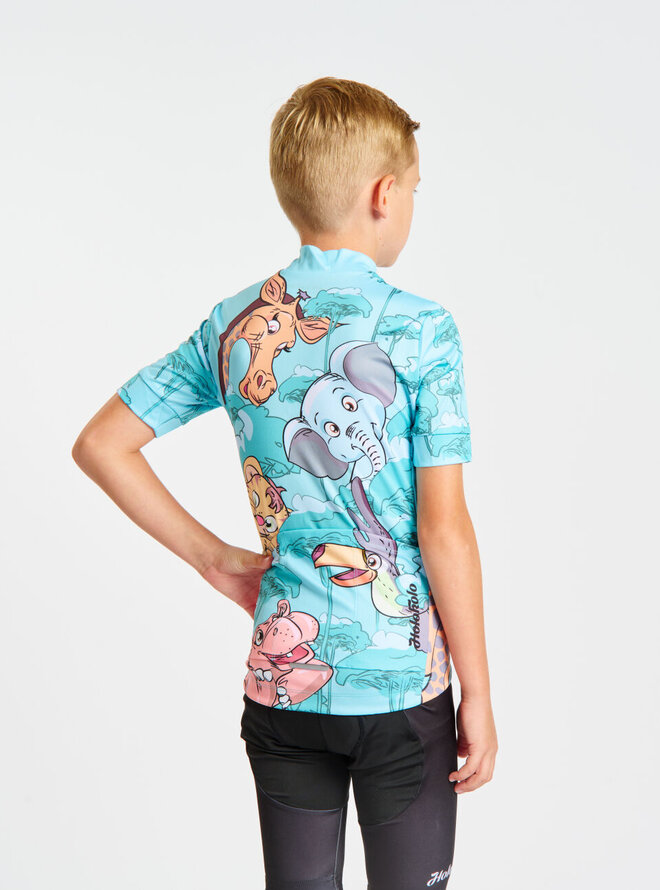 Cyklistický dres s krátkým rukávem - SAFARI - tyrkysová/vícebarevná