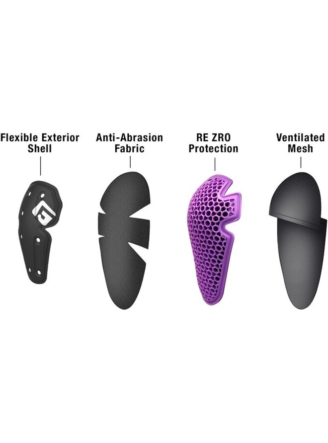 Chraňte sebe i planetu. První biologicky rozložitelnou kolekci chráničů na světě uvádí na trh progresivní značka G-Form díky vlastní vložce RE ZRO. Průměrná plastová láhev se rozkládá 450 až 500 let – náš chránič se rozloží za 3 až 5 let! Celý proces rozkládání ale začne až na skládce, kde jsou ideální podmínky bohaté na mikroby a málo kyslíku. Za jízdy ti poskytne vysokou míru komfortu, velmi nízkou hmotnost, bezkonkurenční odvětrání a díky velké flexibilitě chrániče i bezproblémové šlapání. Rozložitelná ergonomicky tvarovaná vložka RE ZRO se ukrývá v odvětrané, z vnitřní strany polstrované, kapse, ze které lze chránič vyndat, opláchnout a návlek samostatně vyprat jako naše ostatní chrániče. Tento chránič je navržen pro náročné ježdění v těžkých podmínkách. Chránič kryje tvrdá skořepina, která lépe snáší přímý kontakt s terénem při pádu, aniž by se samotná vložka RE ZRO mohla poškodit. Pod ní je umístěna další ochranná vrstva – tkanina Armortex odolná proti roztržení a oděru. Nejdůležitější vrstvu tvoří RE ZRO vložka, která nárazem ztuhne a lépe rozloží tlak na větší plochu a ochrání tak jezdce před poraněním. Poslední, vnitřní, vrstvou je měkká pěnová výstelka pro pohodlné nošení a jistější usazení chrániče. Větrání je zajištěno síťovinou použitou na zadní straně návleku a větracími kanály AirFlow skrz celý chránič. •Vložka RE ZRO je plně biologicky odbouratelná a 100% recyklovatelná • Ergonomicky tvarovaná vložka RE ZRO • Kompresní síťovina na spodním vnitřním panelu poskytuje podporu i odvětrání • Vrchní potah odolný proti oděru pro zvýšenou životnost •Chránič je tenký, lehký, pružný a pevný • Široký horní pásek se silikonovým potiskem pro větší pohodlí a jisté usazení na místě • Certifikace CE EN1621-1 Úroveň 1 • Odnímatelná vložka RE ZRO je pratelná v ruce, zatímco látkový návlek lze prát v pračce Chrániče splňují normu CE EN 1621-1 Level 2. POUŽITÍ DH, enduro, moto ÚDRŽBA Chrániče G-Form je možné prát v pračce na nízkou teplotu. Z chrániče je třeba vyjmout vložku RE ZRO. VELIKOSTI S, M, L, XL VELIKOST L Velikosti L odpovídají obvody: obvod bicepsu v nejširším místě: 34,5 - 37 cm obvod předloktí (12-15cm pod loktem): 24 - 26,5 cmDetaily