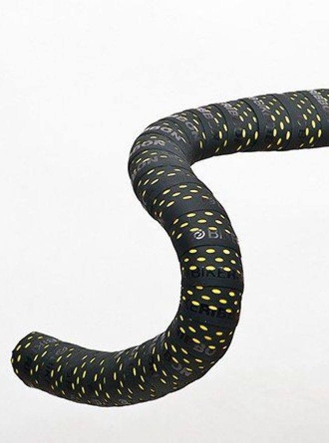 BIKERIBBON Drops je nelepivá omotávka s příjemným semišovým povrchem. 3D vzor s dírkami do první vrstvy vylepšuje grip. První vrstva je vyráběna v různých barevných provedeních, což s černou vrchní vrstvou vytváří zajímavé kombinace.
