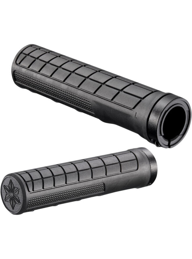 Supacaz eGrip jsou prémiové gripy na řídítka jízdních kol navržené pro maximální pohodlí a kontrolu při jízdě. Ergonomický tvar gripů zajišťuje přirozený úchop a snižuje únavu rukou i při delších trasách, zatímco speciální povrchový vzor zlepšuje stabilitu a přilnavost. Rukojeti jsou vyrobeny z vysoce kvalitního pryžového materiálu s dvojí hustotou, který kombinuje pohodlí s odolností proti opotřebení. Součástí gripů jsou hliníkové pojistné kroužky Star Ringz, které zaručují pevné uchopení řídítek a zabraňují nežádoucímu pohybu při jízdě. Supacaz eGrip jsou vhodné pro širokou škálu jízdních kol včetně silničních, MTB a elektrokol a jsou ideální volbou pro cyklisty, kteří chtějí bez kompromisů spojit pohodlí, bezpečnost a stylový design.Detaily