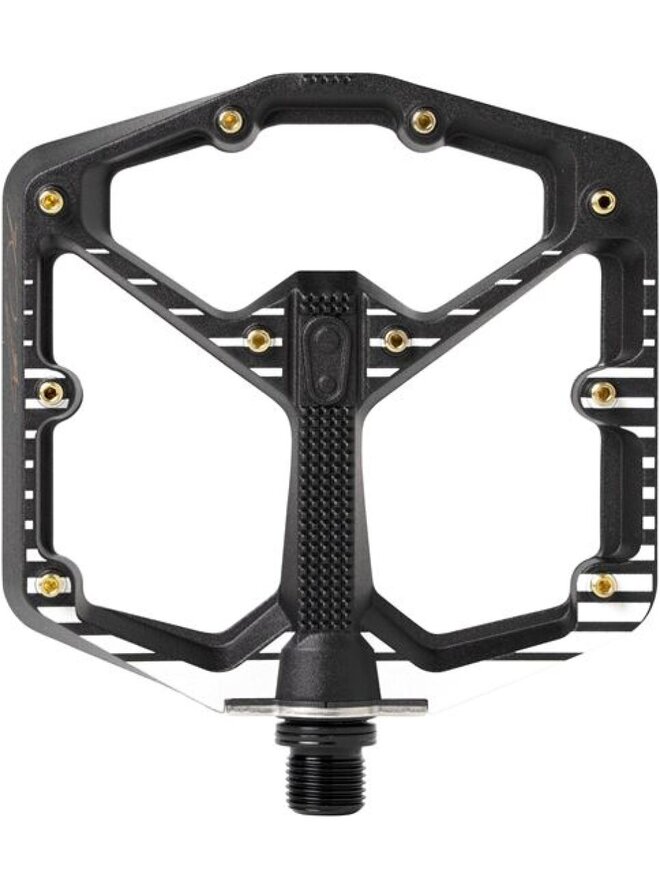 Špičkový platformový pedál ve dvou velikostech pro různě velké velikosti bot. Minimální profil 11-13 mm. VÁHA 345 g PLATFORMA hliník 6061-T6 (100 x 100 mm, pro velikost bot 37-43) OSA Cr-Mo ocel 435 VNITŘNÍ LOŽISKO Igus LL kluzná pouzdra VNĚJŠÍ LOŽISKO Igus LL kluzná pouzdra PINY 10 na každé straně, vyměnitelné TESTY V MÉDIÍCH: http://www.bikeandride.cz/2016/11/pedaly-crankbrothers-stamp-large-prakticke-predstaveni/Detaily