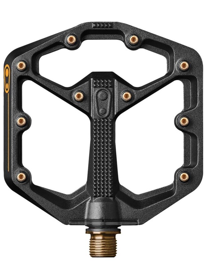 Špičkový platformový pedál ve dvou velikostech pro různě velké velikosti bot. Titanová osa pro co nejnižší hmotnost. Minimální profil 11-13 mm. VÁHA 299 g PLATFORMA hliník 6061-T6 (100 x 100 mm, pro velikost bot 37-43) OSA 6Al/4V Titanium VNITŘNÍ LOŽISKO Igus LL kluzná pouzdra VNĚJŠÍ LOŽISKO Igus LL kluzná pouzdra PINY 10 na každé straně, vyměnitelné maximální hmotnost jezdce: 90kg TESTY V MÉDIÍCH: http://www.bikeandride.cz/2016/11/pedaly-crankbrothers-stamp-large-prakticke-predstaveni/Detaily