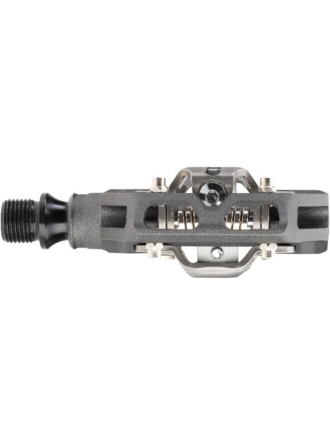 CNC kultivoval, keramicky potažený pedál hořčíku (Ceramag) a titanový osa 5 udržují nízkou hmotnost pouze 420 gramů na pár - přibližně 210 gramů na pedál. Plně obsluhovatelný systém trojitých ložisek se skládá ze samosprávného pouzdra LSL, ložiska jehly a průmyslového ložiska válce. Čtyřnásobná těsnění udržují vnitřní části suché za jakýchkoli podmínek. Systém s dvojitou stranou je kompatibilní s klasickými fotbalovými botami SPD. Retenční systém má nastavitelné pružinové napětí pro jemné a uvolnění a nabízí 5 stupňů volného pohybu. Pedál je testován a certifikován podle EFBE EPBE EPAC XC Tri-Test® (kategorie 3).