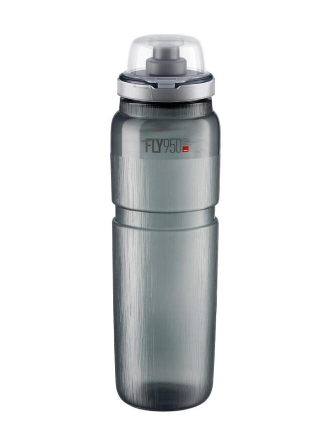 Elite Fly MTB Tex 950ml je velmi lehká cyklistická láhev určená pro horská kola, o objemu 950ml. Má průměr 74 mm a výšku přibližně 267 mm podle technické specifikace. V této verzi váží kolem 81g. Materiál láhve je kombinace PP a plastomeru, uzávěr je z PP, ventilek používá TPE + PP — což zaručuje vysoký průtok a snadné pití. Láhev je vybavena praktickým ochranným krytem ventilku, který chrání před prachem a nečistotami, což je vhodné zejména pro jízdu v terénu. Má texturovaný povrch, který zlepšuje přilnavost i za mokra. Je vyrobeno s použitím přibližně o 30 % méně plastu než běžné lahve, což snižuje jeho ekologickou zátěž. Maximální doporučená teplota kapaliny je 40°C.Detaily