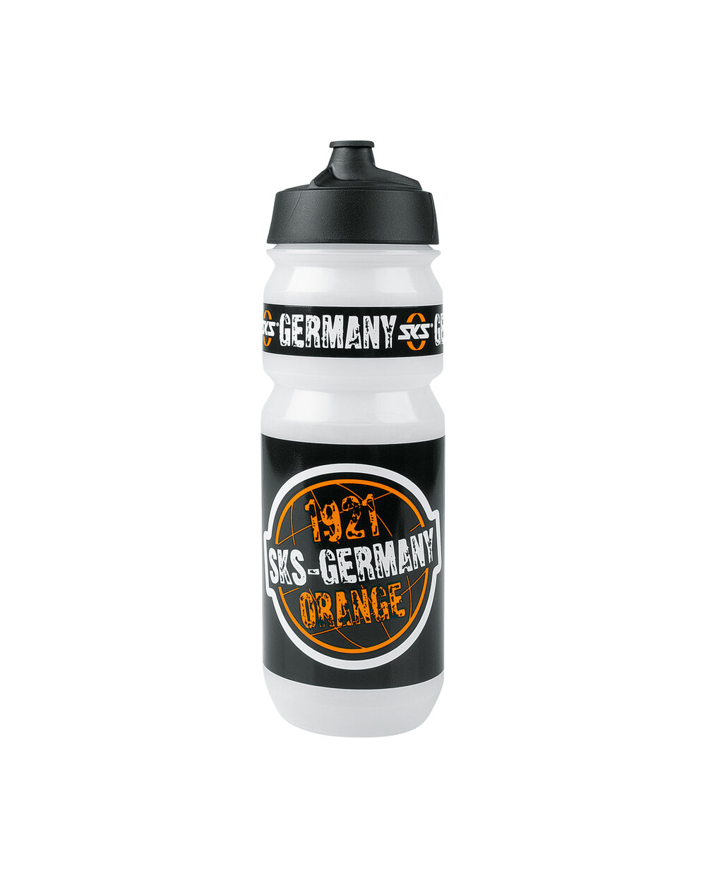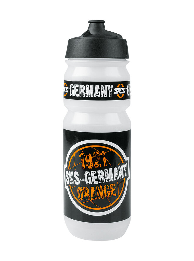 Lahve na kolo s černo-oranžovým vzorem SKS a patentovaným otočným uzávěrem.