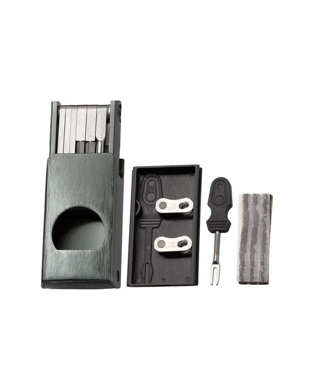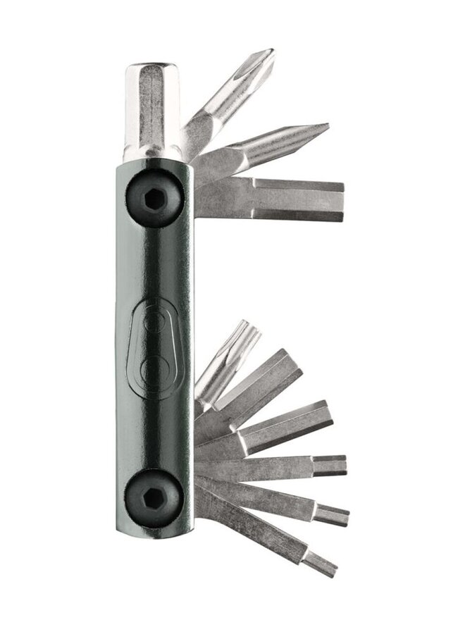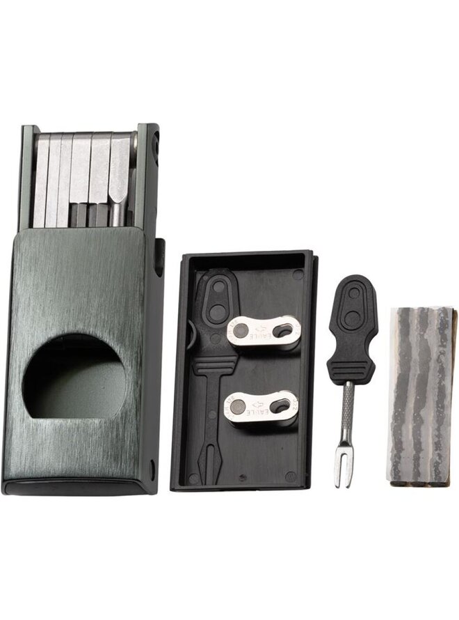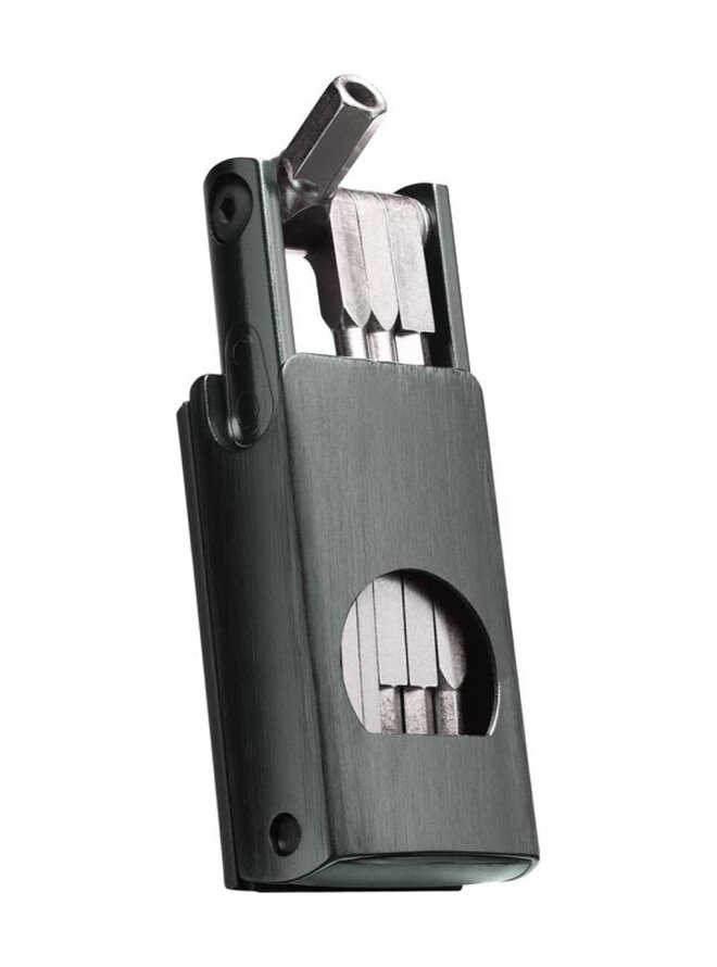 Kompaktní 11funkční nářadí s úložným prostorem pro knoty, knotovač nářadí a další drobnosti. Nářadí uložené v luxusní magnetické krabičce, která zároveň může posloužit jako držadlo, když se do něčeho potřebujete opřít s větší pákou. Váha NÁŘADÍ vysokopevnostní ocel • inbusy 2 / 2,5 / 3 / 4 / 5 / 6 / 8 mm • šroubováky křížový a plochý • Torx klíč T25 • otvírák na lahevDetaily