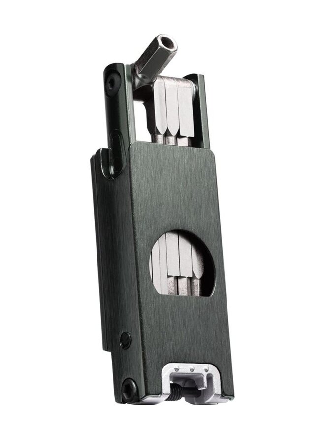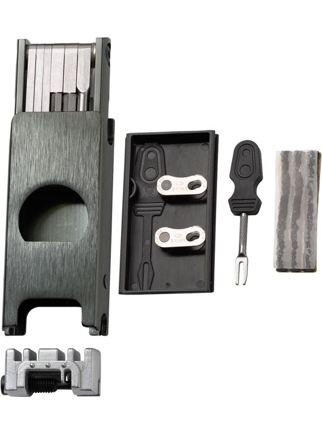 Kompaktní 16funkční nářadí s úložným prostorem pro knoty, knotovač a další drobnosti. Nářadí uložené v luxusní magnetické krabičce, která zároveň může posloužit jako držadlo, když se do něčeho potřebujete opřít s větší pákou. Váha NÁŘADÍ vysokopevnostní ocel • nýtovač 8 / 9 / 10 / 11 / 12 rychlostní řetězy • centrovací klíče #0, #1, #2 a #3 • inbusy 2 / 2,5 / 3 / 4 / 5 / 6 / 8 mm • šroubováky křížový a plochý • Torx klíč T25 • otvírák na lahevDetaily