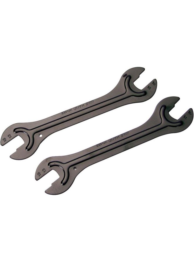 Sada 2 kusů kuželových klíčů z kalené oceli. Klíče obsahují otvory M13, M14, M15 a M16. Tloušťka klíče 2 mm. Hmotnost: 210 g