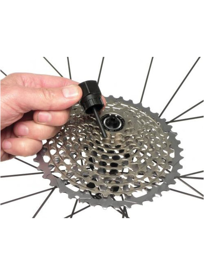 Stahovák kazet FR-5-2 G je určen k uvolnění pojistného kroužku (lockringu) kazet, který má 12 vnitřních drážek, včetně 11rychlostních kazet.