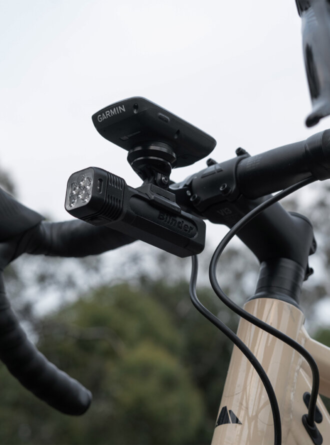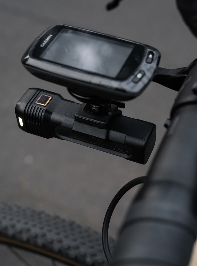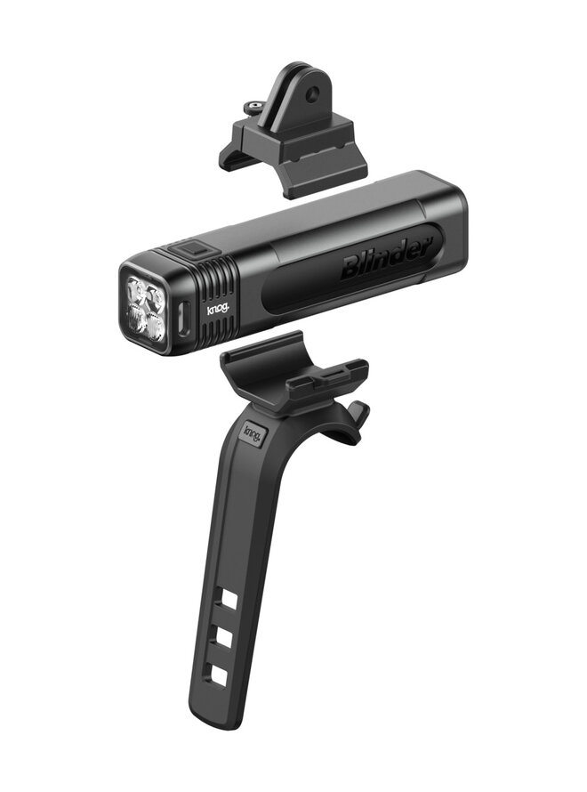 Blinder 900 se dodává se dvěma samostatnými držáky. Pevný a flexibilní gumový držák na řídítka, který je vhodný pro průměry od 22,2 mm do 35 mm, a držák kompatibilní s Go-Pro, který může umístit světlo pod počítač.