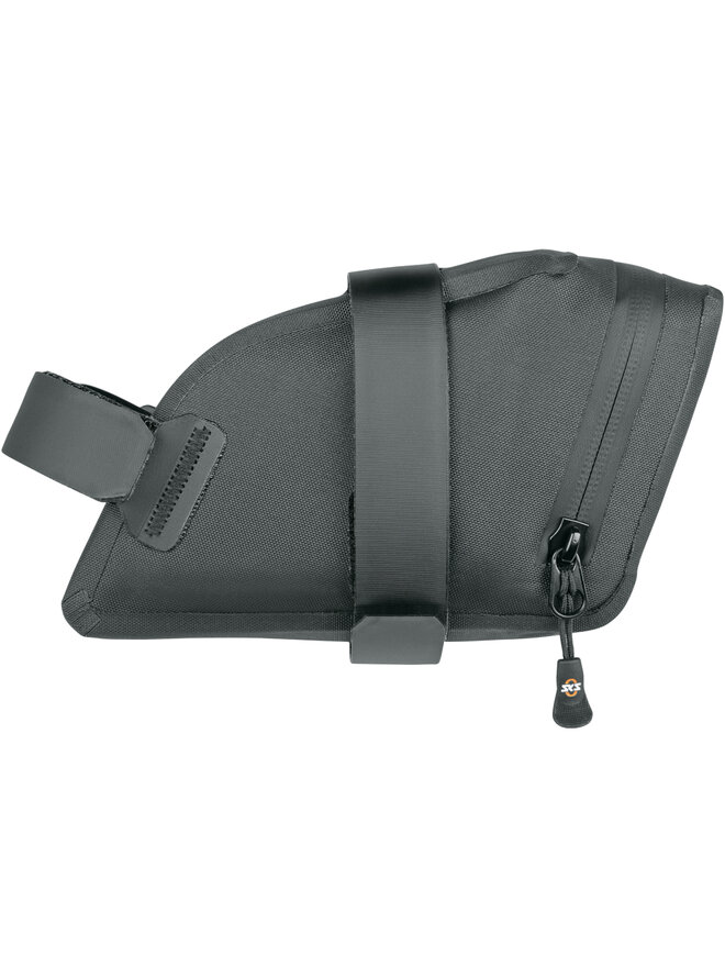 Dvě vnitřní síťované kapsy bezpečně uschovají klíče nebo peníze. Tašku SKS lze snadno připevnit pod sedlo kola pomocí protiskluzových suchých zipů, které lze individuálně zkrátit a vyměnit. Na zadní straně tašky je držák na zadní světlo a reflexní logo SKS, které zvyšuje viditelnost ve tmě.