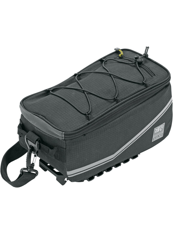 Taška je vybavena adaptérovou deskou umístěnou na spodní straně. PURE SMARTBAG se během několika sekund pevně nacvakne na všechny nosiče zavazadel se systémem MonkeyLoad-T. Tlumící vrstva pod deskou zaručuje stabilní uchycení a tašku lze také uzamknout. Mechanismus se uvolní pouhým vytažením dopředu. Tašku můžete nosit za boční držadla nebo ji používat jako tašku přes rameno díky ramennímu popruhu.