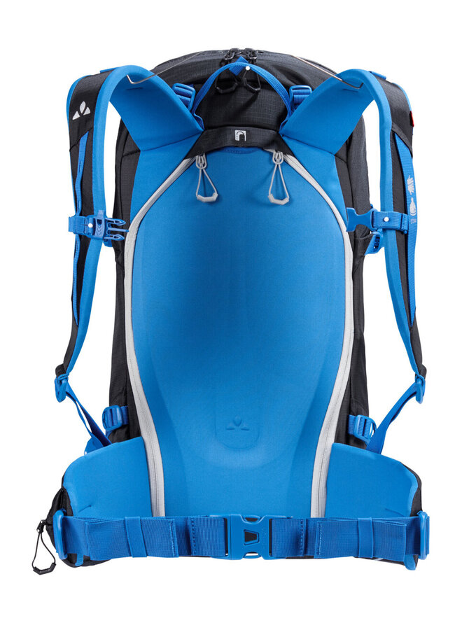 - Boční kompresní popruhy, vnitřní kapsa na zip, připojení rukavic k ramennímu pásu, hrudní popruh s píšťalkou, informační panel pro alpskou pohotovostní místnost uvnitř hlavního prostoru, díra pro zvlhčovací systém