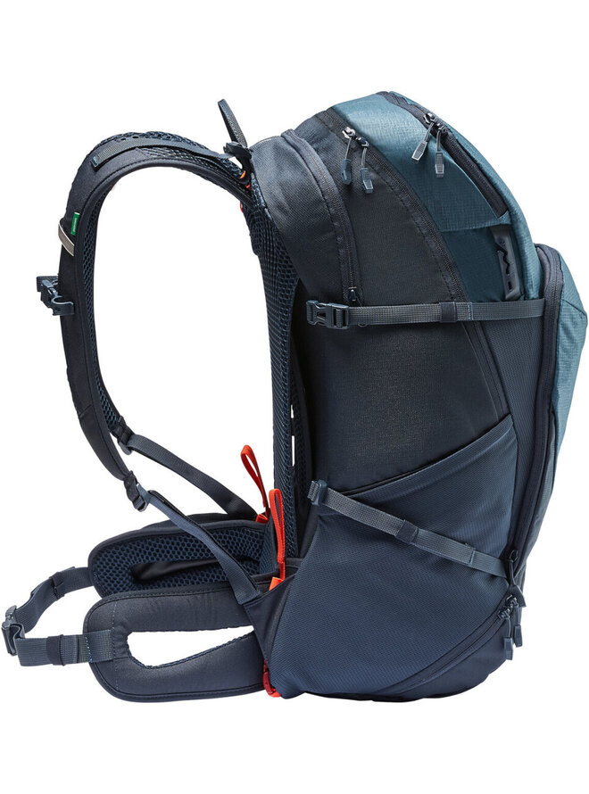 - Rozdělený kompartment nástrojů s přední přední částí, telefonní kompartmentem, bočními kapsami, nastavitelným popruhem na hrudi, odnímatelný držák přilby, boční kompresní popruhy, pláštěnka, připojení světla