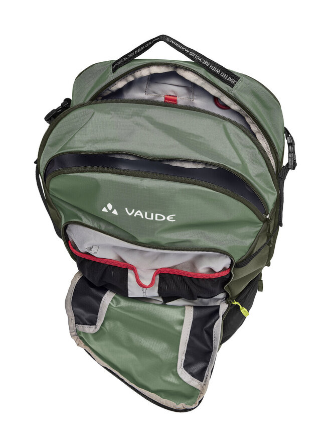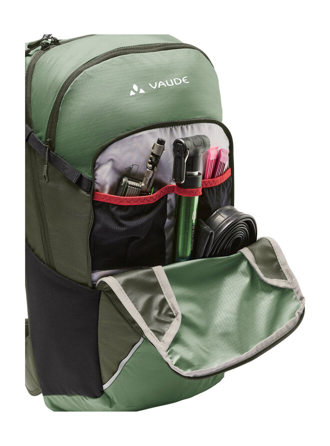 - Samostatný kompartment nahoře, kompartment nástrojů s kapsami na síti, bočními kapsami, kompresními popruhy, bederní kapsou