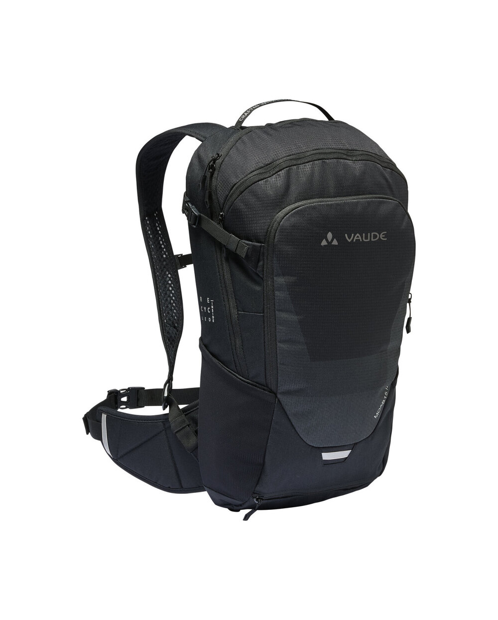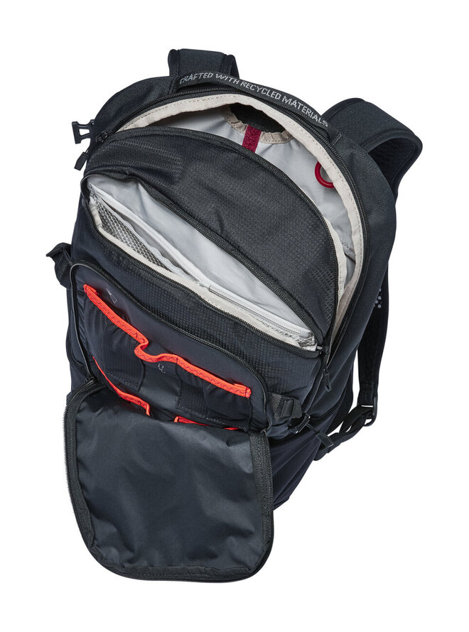 - Před hlavním kompartmentem je vnitřní kapsa na zip, kompartment nástrojů, držák přilby, pravé křídlo bederního pásu, oční natahovací kapsy, samostatný kompartment zvlhčovače, kompresní popruhy po stranách, sluneční popruh, pláštěnka v samostatném dolním kompartmentu a reflexivní