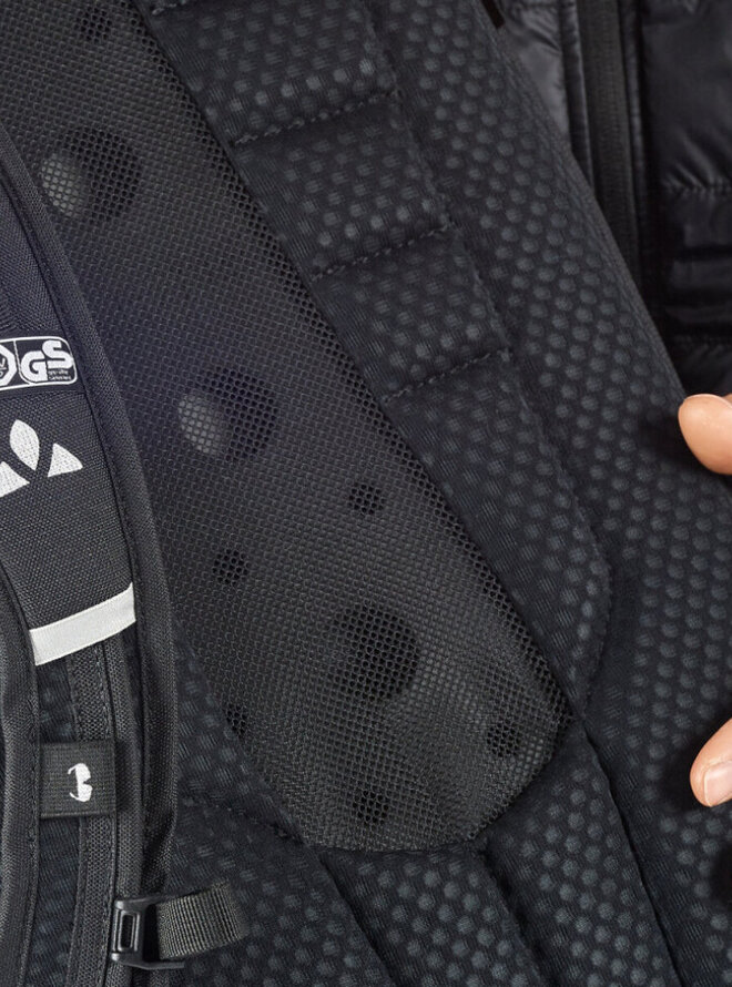 - Nastavitelný popruh hrudníku s držákem hadice na pití, držákem kláves, držákem na bezpečnostní světlo, držák brýlí, boční kompresní popruhy a reflexní prvky
