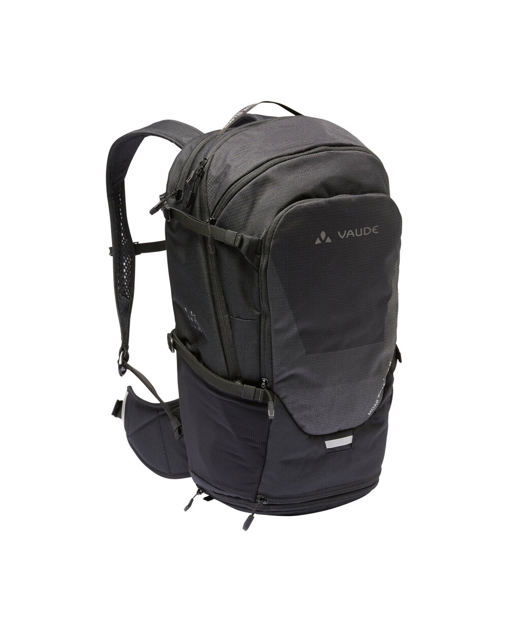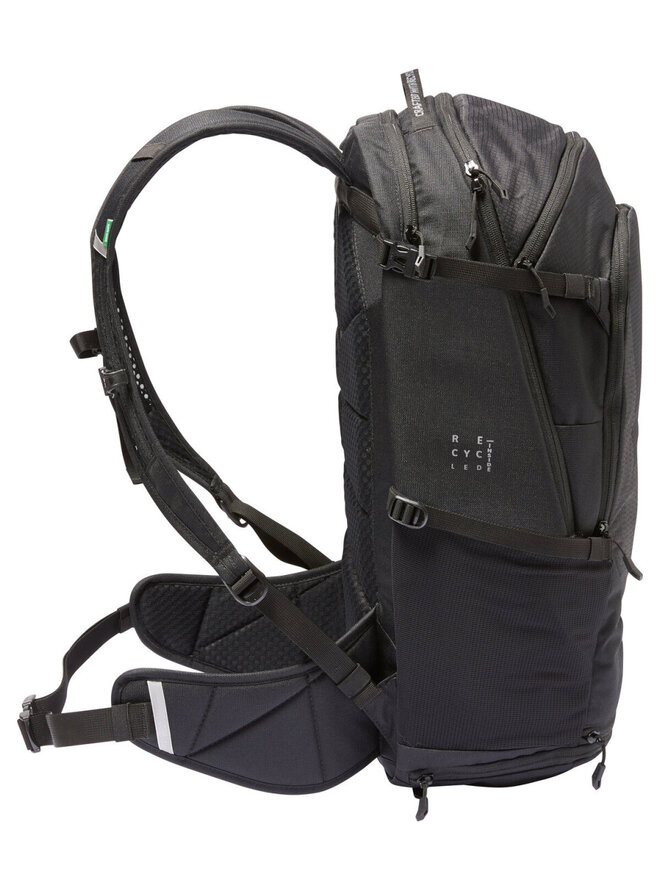 - Kapsa na zip na pravé straně bederního pásu, boční natahovací kapsy, samostatný zvlhčovací kompartment, kompresní popruhy nahoře, pláštěnka v samostatném spodním oddílu a reflexní prvky