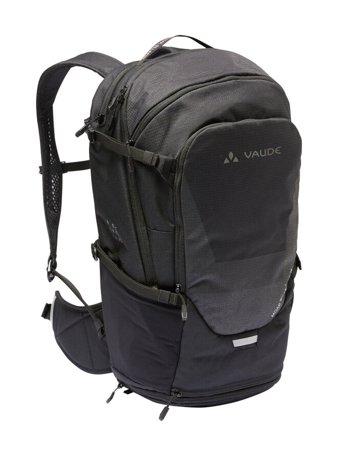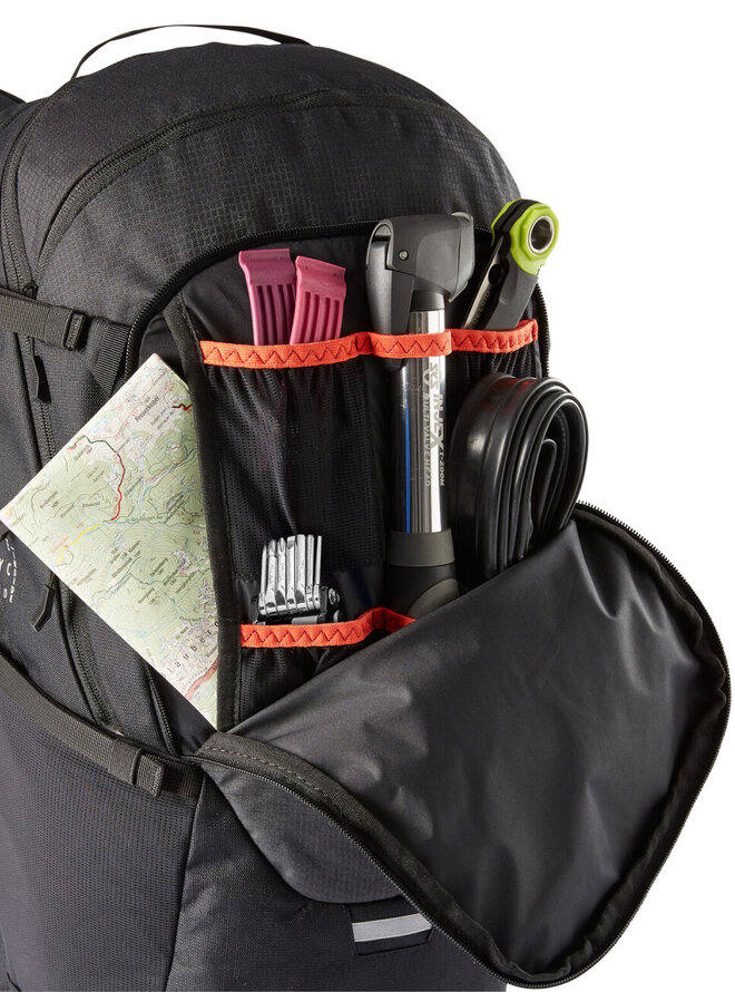 - Batoh je rozdělen do tří oddílů. Velký hlavní kompartment lze rozdělit pro lepší organizaci oblečení a jídla a nabízí samostatný přístup od výše nebo dole, před ním je dalším oddílem pro brýle nebo peněženku, vpředu, pod ním je místo pro mapy nebo jiné dokumenty, má také skrytý kompartment s držákem helmy