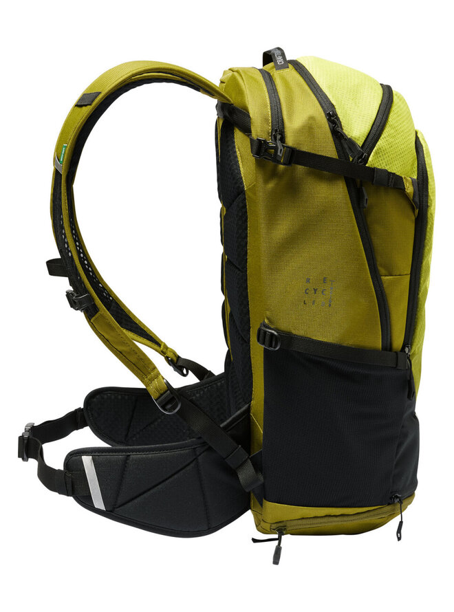 - Kapsa na zip na pravé straně bederního pásu, boční natahovací kapsy, samostatný zvlhčovací kompartment, kompresní popruhy nahoře, pláštěnka v samostatném spodním oddílu a reflexní prvky