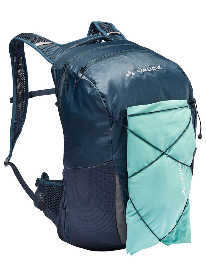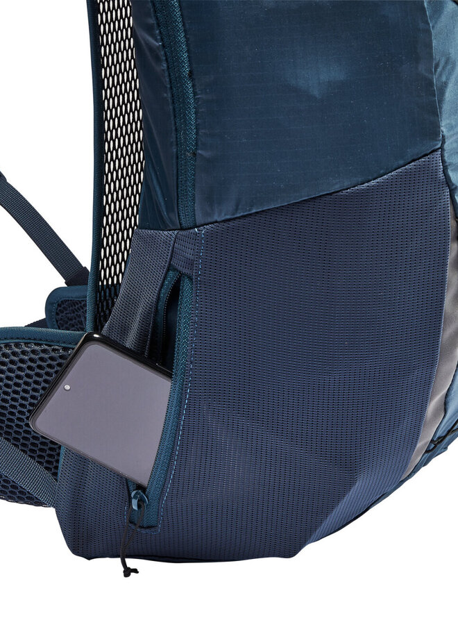- Přední a boční kapsa na zip, přední šněrování, reflexní prvky, zvlhčovací vstup systému, hrudní popruh s klipem, integrovaným pláštěm
