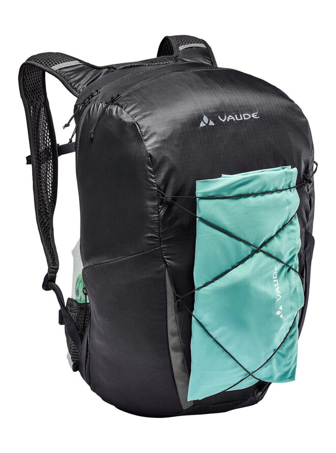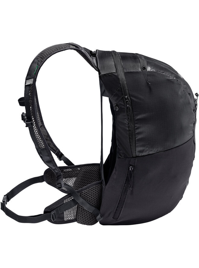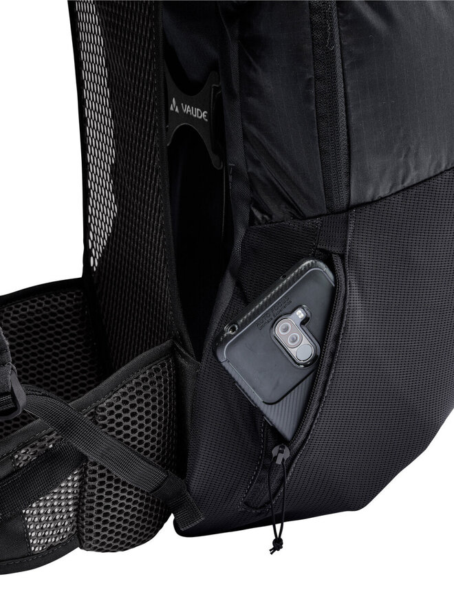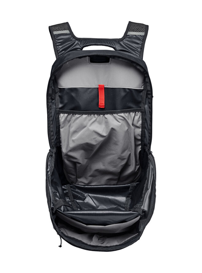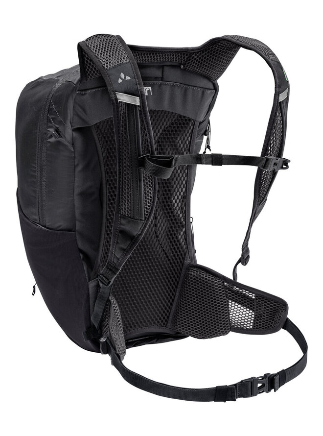 Přední a boční kapsa na zip, přední šněrování, reflexní prvky, zvlhčující vstup systému, hrudní popruh s klipem na držáku trubice a bezpečnostní světlo