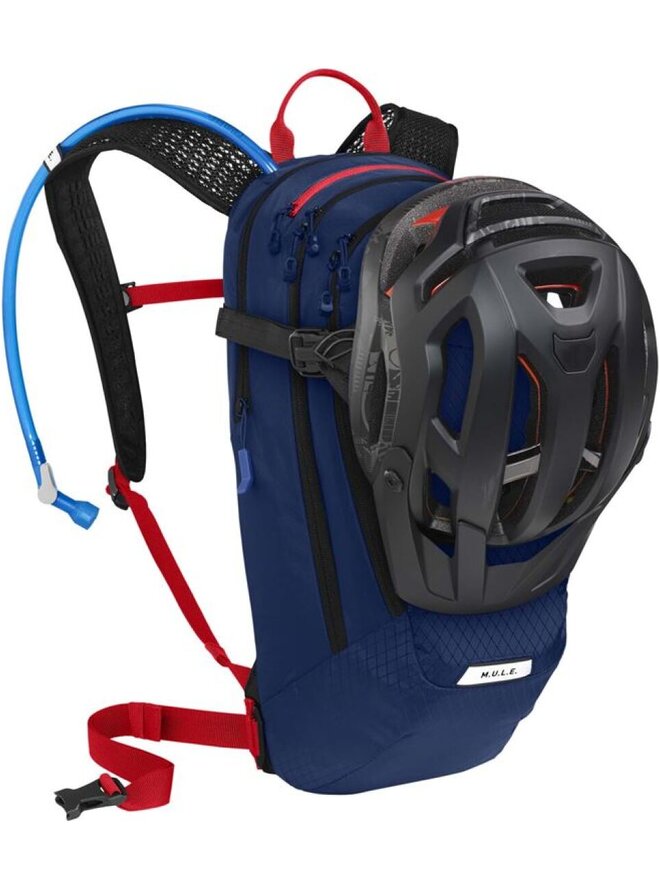 Legendární bikový batoh M.U.L.E. je svým obsahem 12 l určený pro celodenní výšlapy. Má ve výbavě integrovaný organizér (poutko na klíče a šikovné přihrádky na doklady), Magnetic Tube Trap a Helmet Carry, kapsu na telefon či brýle, hrudní a bederní pás (odnímatelný), reflexní prvky a poutko na blikačku. Inovovaný zádový systém Air Support zajišťuje pohodlí a kvalitní odvětrání zad. Dokonale prodyšné jsou i popruhy. Dámská verze je navržena tak, aby respektovala ženské torso, a popruhy jsou vytvarované do „S“.