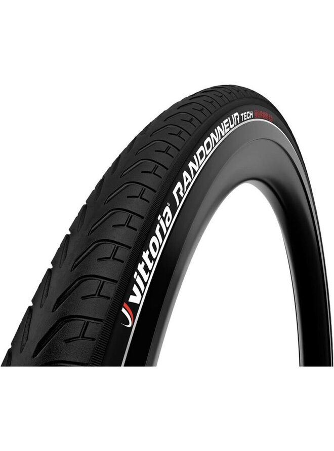 RANDONNEUR TECH Nízký valivý odpor a maximální (dvojitá) ochrana proti defektům dělají z tohoto pláště ideálního společníka do města, nebo na náročnou turstiku či cestování. Plášť splňuje normu ECE-R75 a je tedy dostatečně odolný pro montáž na elektrokola. Bezpečnost zvyšuje krom dvojité ochrany proti defektu také reflexní bok. Drátová patka Konstrukce kordu NYLON 33 TPI Dvojitá ochrana proti defektu pod běhounem Grafenová směs zvyšuje odolnost, prodlužuje životnost a také adhezi - zejména za mokra Reflexní bokDetaily