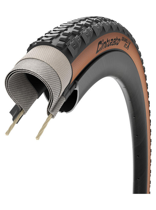 Využívají stejný vzorek dezénu jako Cinturato Gravel RC. Cinturato Gravel RC X je odpovědí na veškeré požadavky gravel závodění v drsnějším terénu: rychlost na rovinách díky minimálním středovým výstupkům a agresivita v zatáčkách díky vyšším a výraznějším výstupkům, které zajišťují stabilitu při zatáčení. Nová konstrukce pláště TechWALL X pro bezdušové provedení obsahuje vyztuženou a odolnou tkaninu o hustotě 60 tpi, která sahá dále přes okraj dezénu a poskytuje ještě větší ochranu bočnic, navíc k již existující ochranné vrstvě od patky k patce.