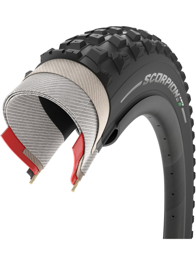Představujeme první výsledky práce Pirelli vykonané pod dohledem DH legendy Fabiena Barela a ve spolupráci se závodními sjezdovými a enduro týmy. Scorpion™ E-MTB je řada 3 různých vzorků dezénu pro různé terénní podmínky, od M (smíšený povrch), přes R (univerzální zadní plášť), po S (měkký a sypký povrch), vyvinutých tak, aby nabídly kompletní řadu výkonných plášťů pro každodenní použití na trailech. Modelová řada Scorpion™ E-MTB je určená pro výkonná horská kola s podporou elektromotoru. Pláště jsou navržené tak, aby odolaly síle moderních elektrokol, kterých kroutící momenty jsou stále vyšší a vyšší. Scorpion™ E-MTB poskytuje grip (přilnavost) a spolehlivost tam, kde to je potřebné: patentovaná konstrukce HyperWALL™ dosahuje spolehlivost DH (sjezdového) pláště bez nadměrné hmotnosti, zatímco patentovaná gumová směs SmartGRIP Gravity umožňuje přilnavost na suchém a mokrém povrchu, jako i výbornou odolnost proti roztržení, díky patentovanému a trvale udržitelnému chemickému komponentu s názvem Lignin. Plášť tak disponuje výkonností, která přetrvává po celou životnost pláště, i po částečném opotřebení vzorku.