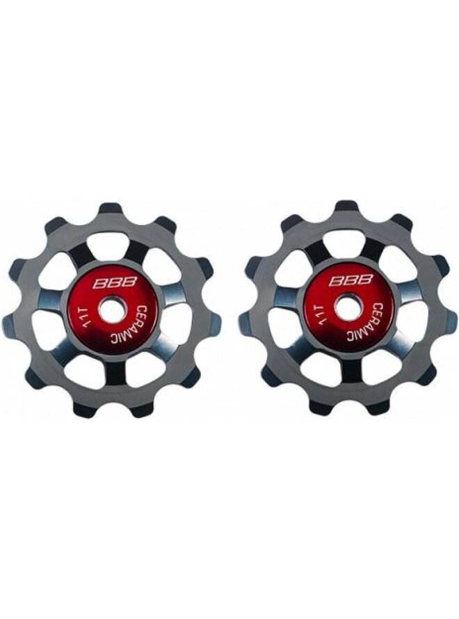 Vysoce kvalitní hliníková řadicí kolečka s keramickými ložisky.Extra silná pro rychlé a přesné řazení.Vysoce kvalitní zapouzdřená keramická ložiska. Velmi hladký chod, odolné.11 zubů, kompatibilní s řadicími sadami Shimano 9, 10 a 11 (kromě RD-7900 a 7970) a Campagnolo 11.Detaily