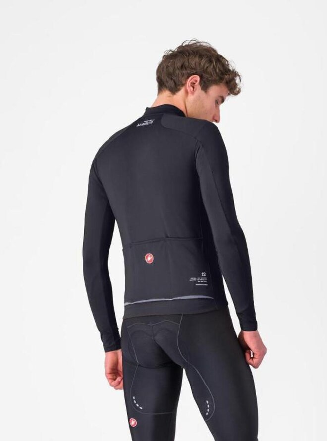 Perfektní bunda pro intenzivnější jízdu v chladných podmínkách. Technologie Castelli Ristretto umožňuje malé množství vzduchu, a tedy lepší odpařování potu, 12krát více než předchozí technologie.zlomnost nové generace v elastické bundě, která si otře hranice mezi dresem a bundou, pro chladné až nepatrné podmínky