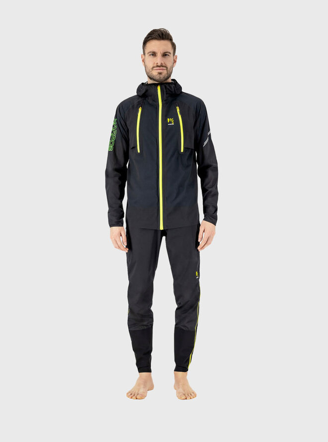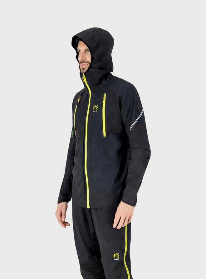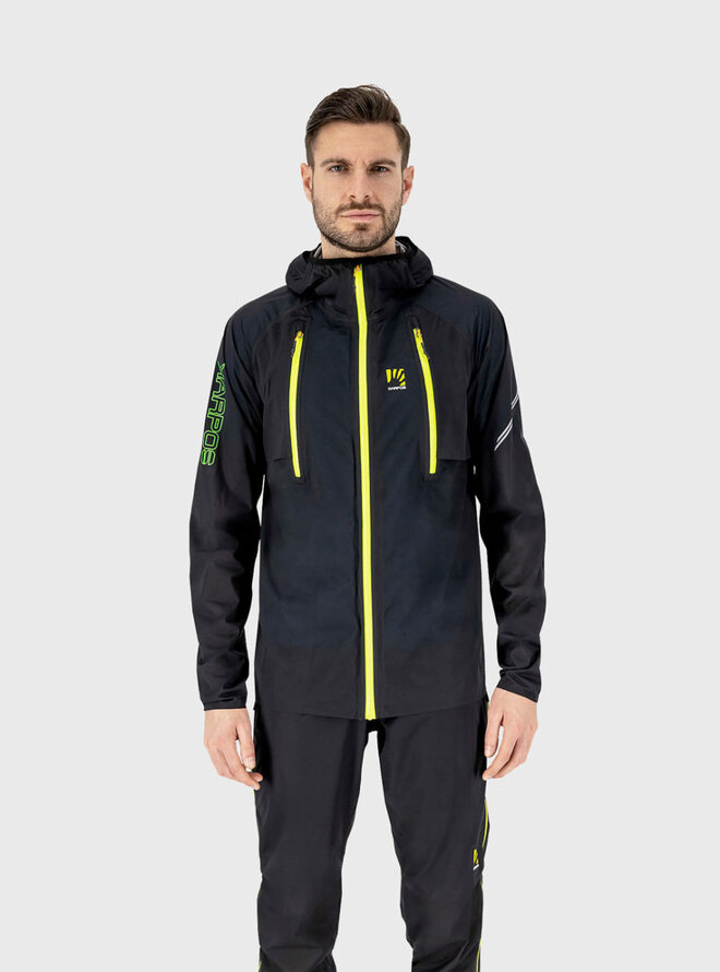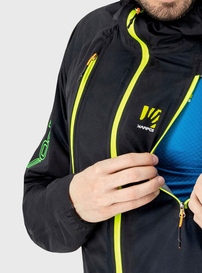 Špičková nepromokavá běžecká bunda, kterou by měl mít každý běžec v batohu v kteroukoli roční dobu a za jakýchkoli podmínek. Běžecká bunda Karpos Lavaredo Rain byla navržena tak, aby poskytovala pohodlí a výkon i v nepříznivém počasí. Na jeho vývoji a zdokonalování Karpos spolupracoval se světovým rekordmanem v trail runningu Franco Coll. Výsledkem této spolupráce je extrémně lehká, větru a voděodolná a maximálně prodyšná bunda, kterou lze snadno a rychle sbalit do běžeckého batohu. Dva přední zipy na hrudi umožňují snadný přístup k lahvím s vodou a kapsám batohu. Větrání zajišťuje perforovaná část na zádech a v podpaží. Bunda je vyrobena z elastické tkaniny, která umožňuje nošení batohu pod bundou a neomezuje v pohybu.