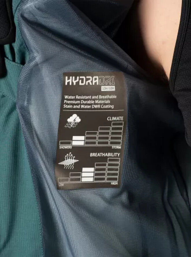 Hydradri: 10 000 mm vodní sloupec /10 000 g /m² prodyšnost