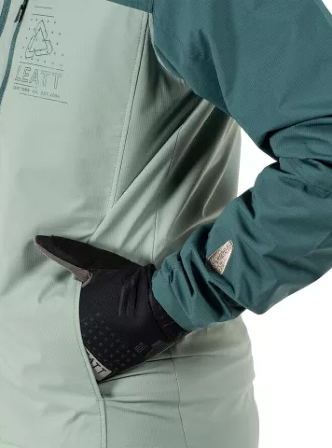 Vyrobeno z prémie dva -vrstva hydradri membrány z Leatt - odolnost proti vodě a prodyšnost 10 000/10 000, což je ideální pro většinu podmínek jízdy. Kromě toho může být bunda složena do vlastního hrudního sáčku, takže si ji můžete snadno zabalit a vzít si s sebou kdekoli.