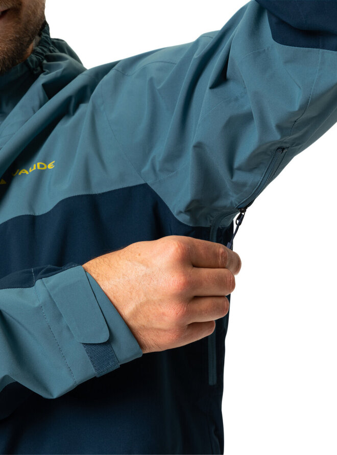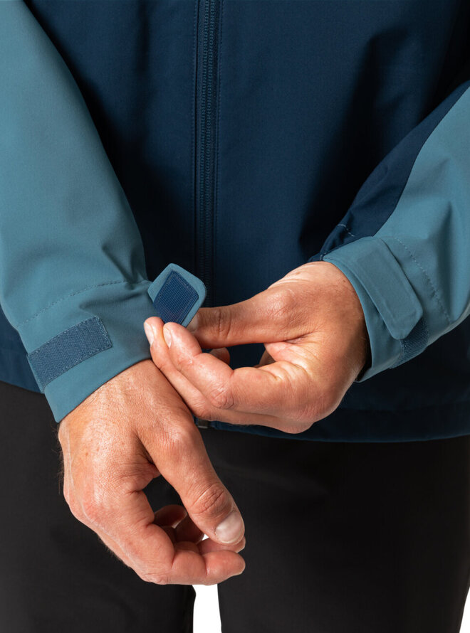 - Přední kapsa s vodotěsným zipem, oplachovací kapotou, reflexními prvky, větrání pod pažemi, nastavitelný spodní lem a manžety