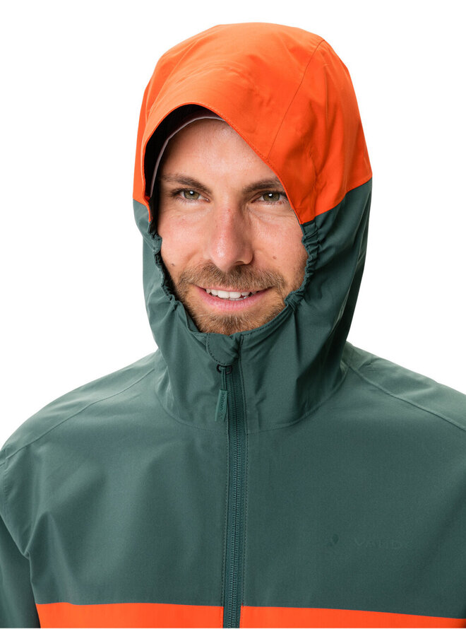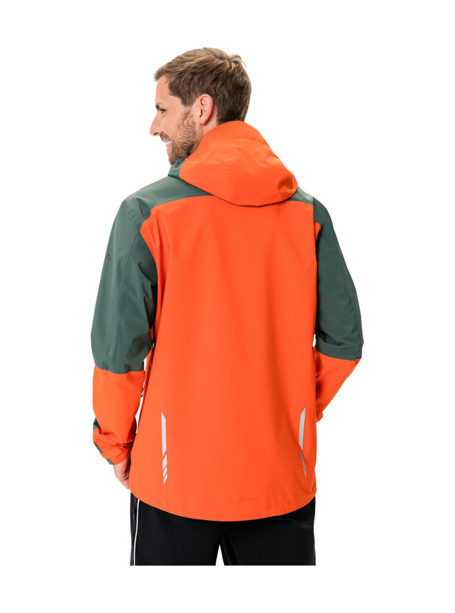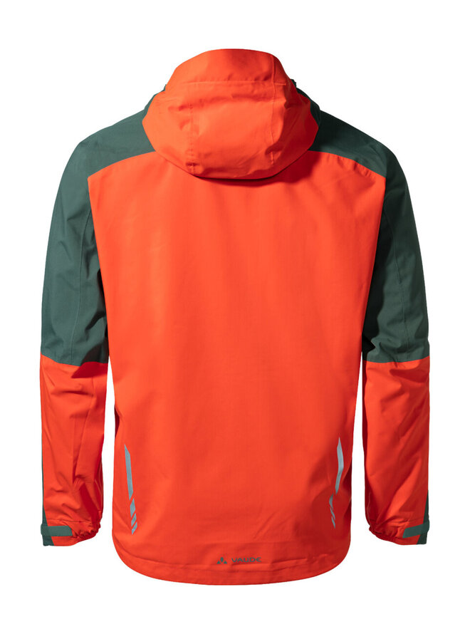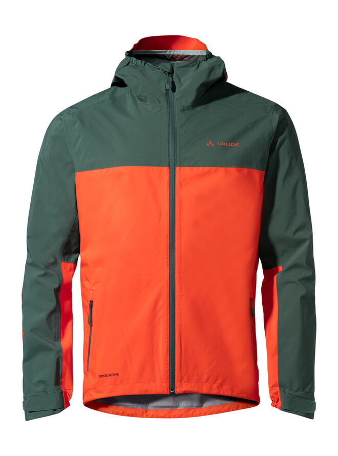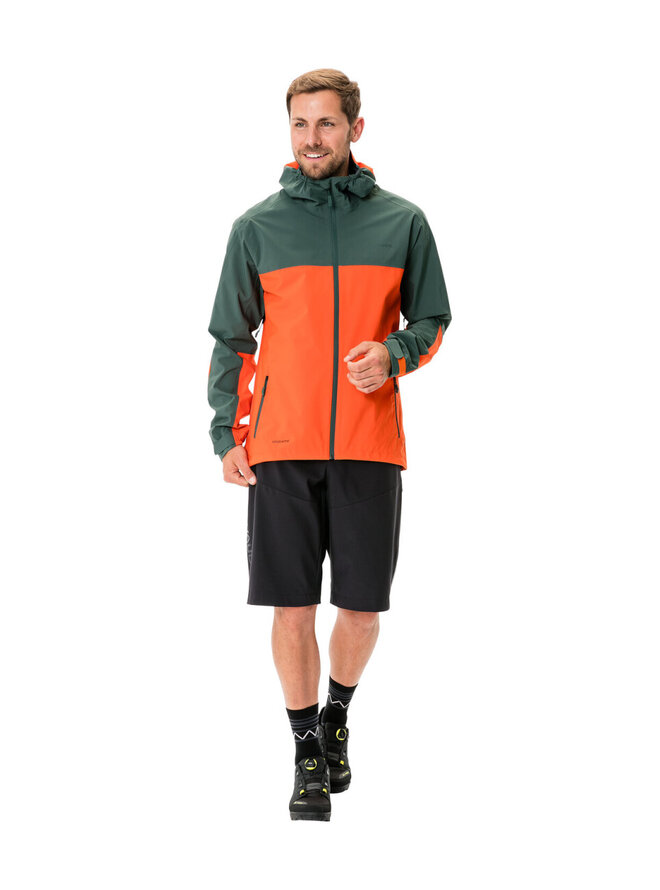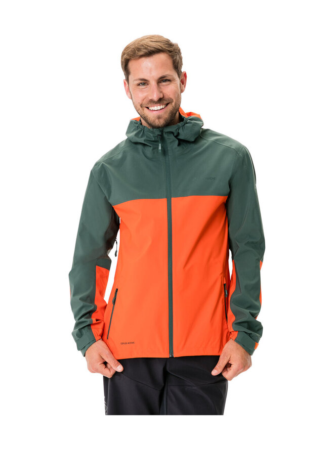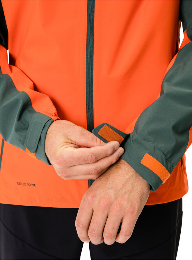 - Přední kapsa s vodotěsným zipem, oplachovací kapotou, reflexními prvky, větrání pod pažemi, nastavitelný spodní lem a manžety