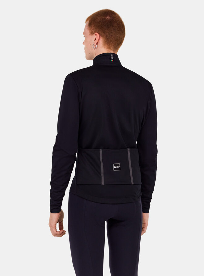 Slim střih udrží bundu na svém místě i v nízké aerodynamické poloze. Na zadní straně najdete tři klasické kapsy na výživu a náhradní vrstvy a jednu skrytou vnitřní kapsu na cennosti. Reflexní prvky na zadní straně zvyšují viditelnost v mlze, tmě a špatném počasí. Praktický detail v podobě poutka na límci usnadňuje vysoušení po tréninku a vnitřní štítek s legendárními Bergamo stoupáky dodává bundě osobitý charakter.
