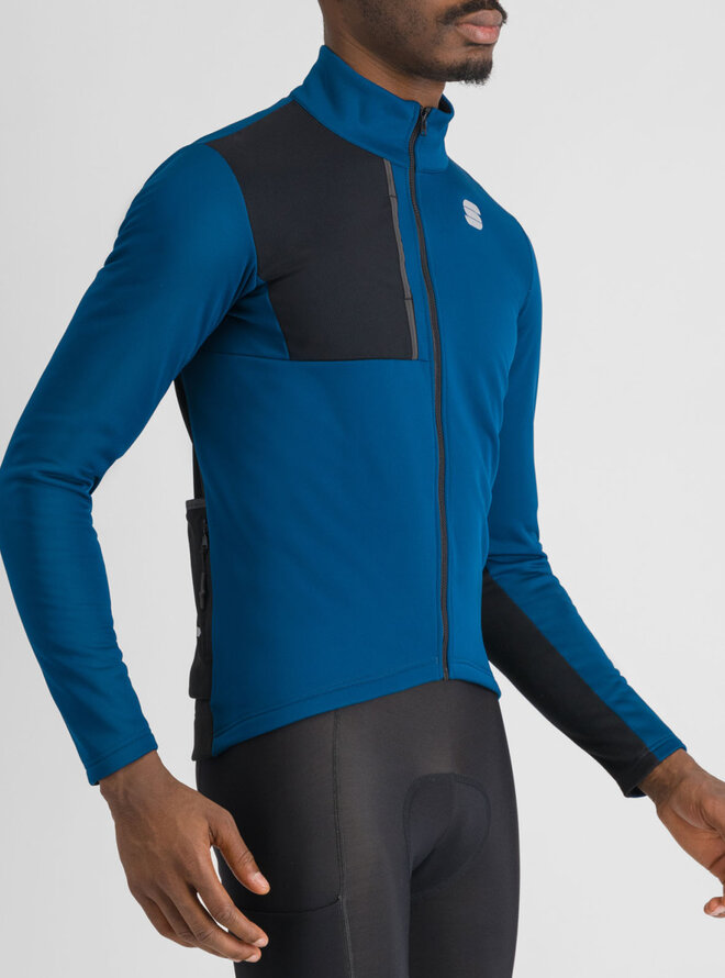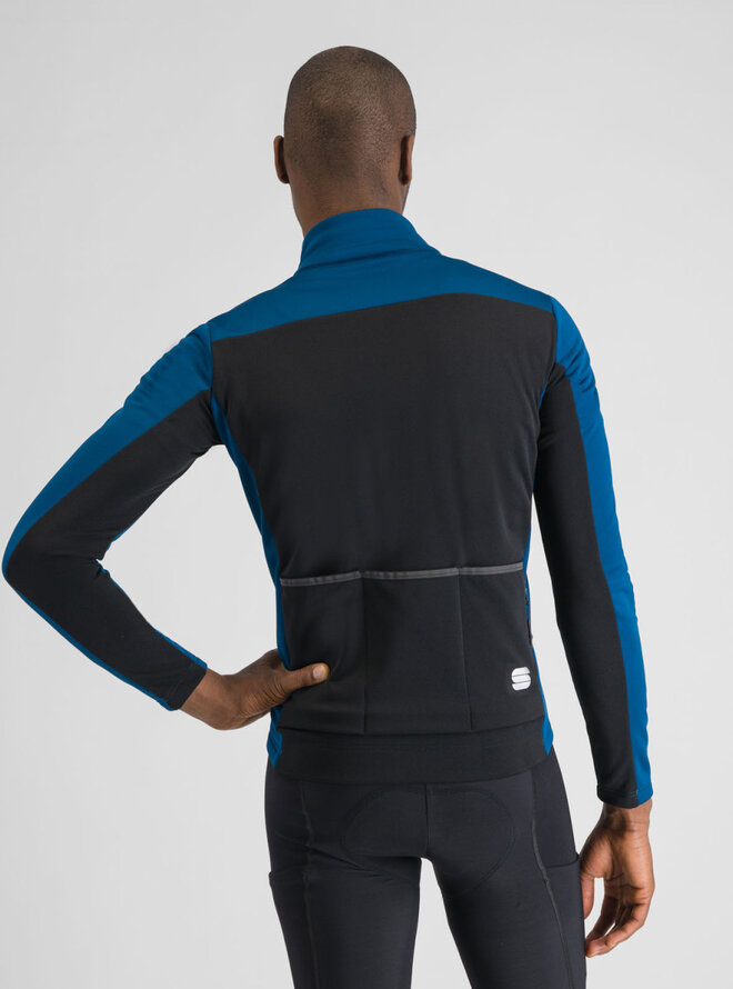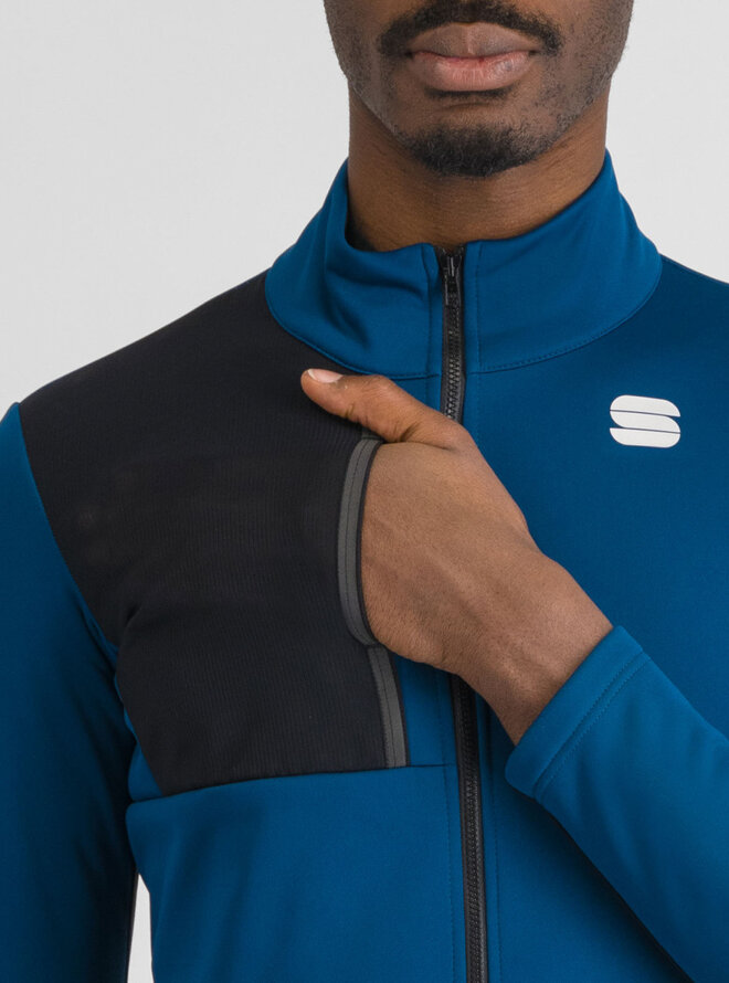 - Záda bundy a podpaží jsou vyrobeny z elastické česané tkaniny, která zaručuje optimální volnost pohybu a zároveň účinně odvádí přebytečné teplo a pot. Tento materiál přispívá k regulaci tělesné teploty, čímž zabraňuje přehřívání i při vysokorychlostní jízdě.
