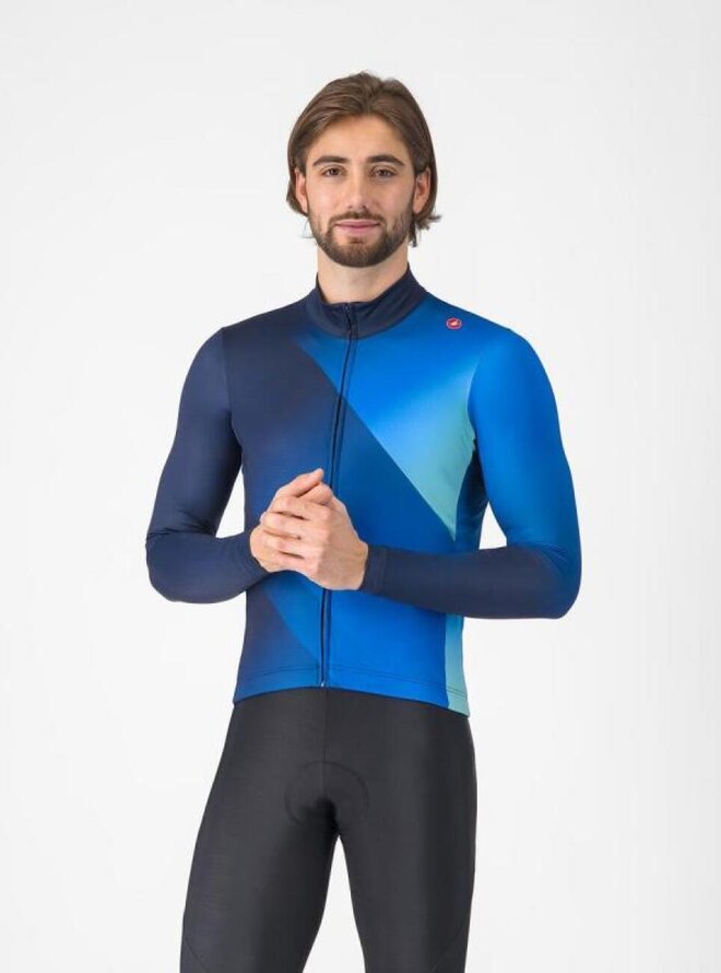 Cyklistický dres s dlouhým rukávem zimní - AMPLIFY - modrá