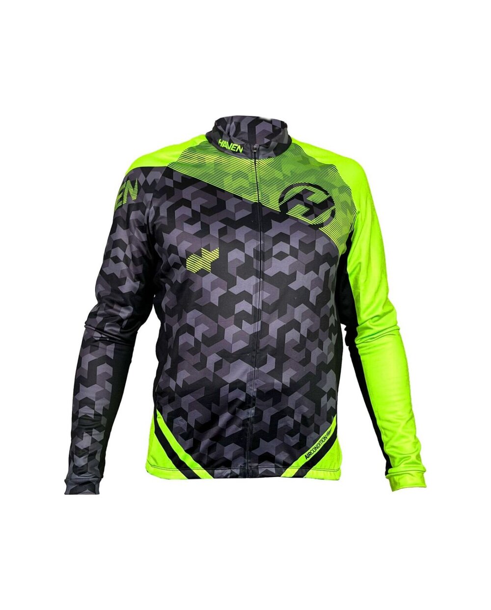 Cyklistický dres s dlouhým rukávem zimní - STRATO - černá/světle zelená