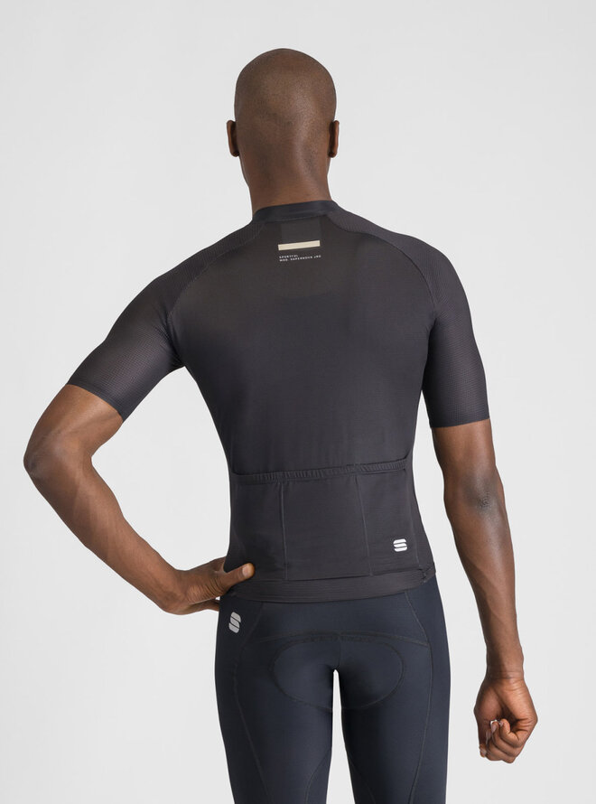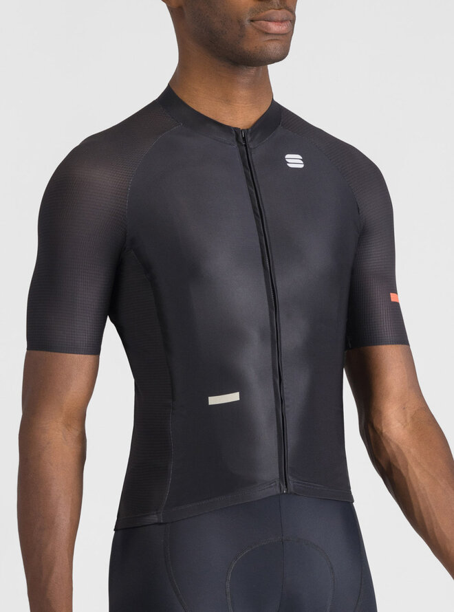 Ultralehká konstrukce z polyesteru a elastanu zajišťuje perfektní odvod potu, zatímco aero střih těsně přiléhá k tělu a snižuje odpor vzduchu. Strategicky umístěné prodyšné panely na bocích a raglánových rukávech umožňují maximální proudění vzduchu, čímž dres zabraňuje přehřívání i během nejteplejších dnů.
