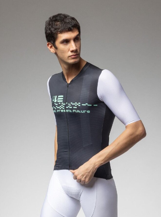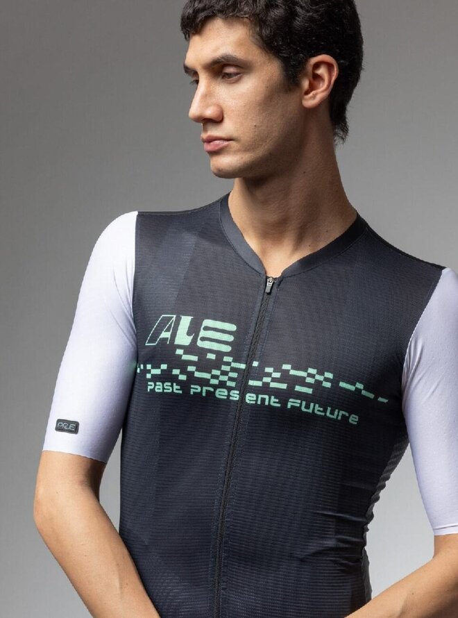 Cyklistický dres s krátkým rukávem - PR-E MEGABYTE 2.0 - černá/bílá