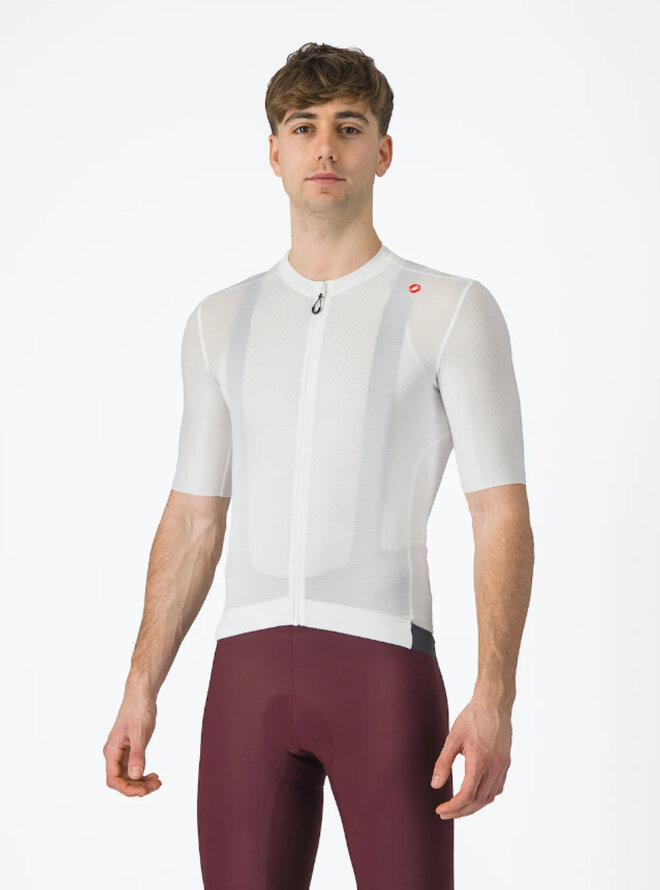 Air_O Stretch materiál vyvinutý ve společnosti Castelli, který zajišťuje prodyšnost, pohodlí a perfektní padnutí.