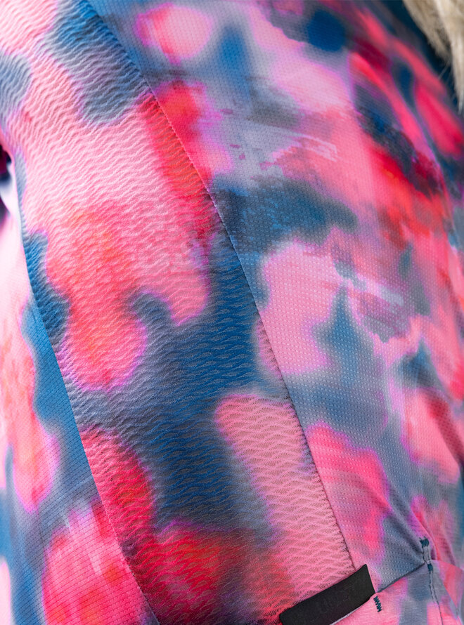 Přední část využívá stejný mikroperforovaný materiál jako zadní, čímž podporuje nepřetržité proudění vzduchu a pomáhá udržovat tělo svěží a suché. Rukávy s čistým střihem beze švů eliminují tření a přesně se přizpůsobují, čímž zvyšují stabilitu a aerodynamiku bez ztráty komfortu.